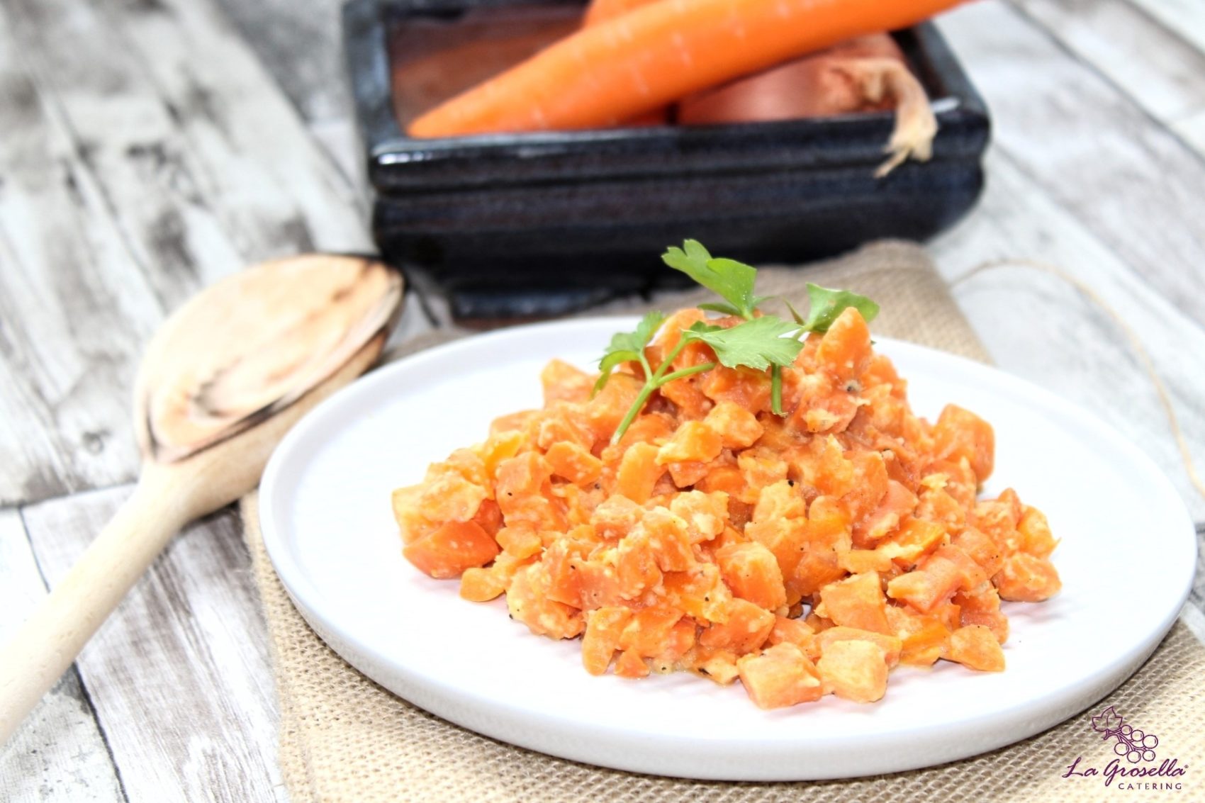 Un clásico de La Grosella, el estofado de zanahoria lo puedes servir a tu antojo, que esté acompañado de un plato fuerte de tu elección o como un entrante. Es ideal para acompañarlo con cualquier carne o pescado. Lo que importa es que tú lo disfrutes como más te parezca.