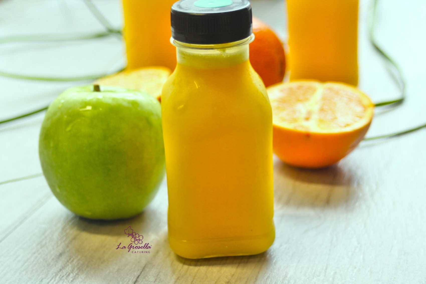 Botellita de zumo natural de naranja y manzana verde